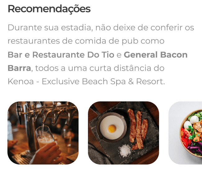 Na tela de detalhes sobre o hotel ou experiência temos dois textos longos que não atraem o usuário para ler o conteúdo.